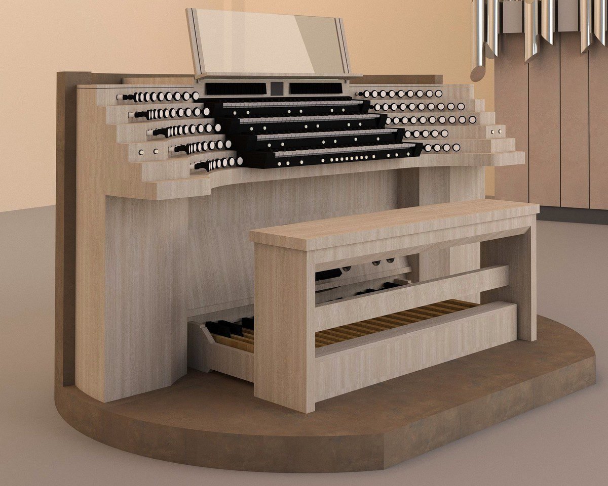 Due saranno le consolle a 4 manuali, una semi internata nel basamento del corpo d’organo prinicpale in cantoria ed una, mobile, a piano chiesa.