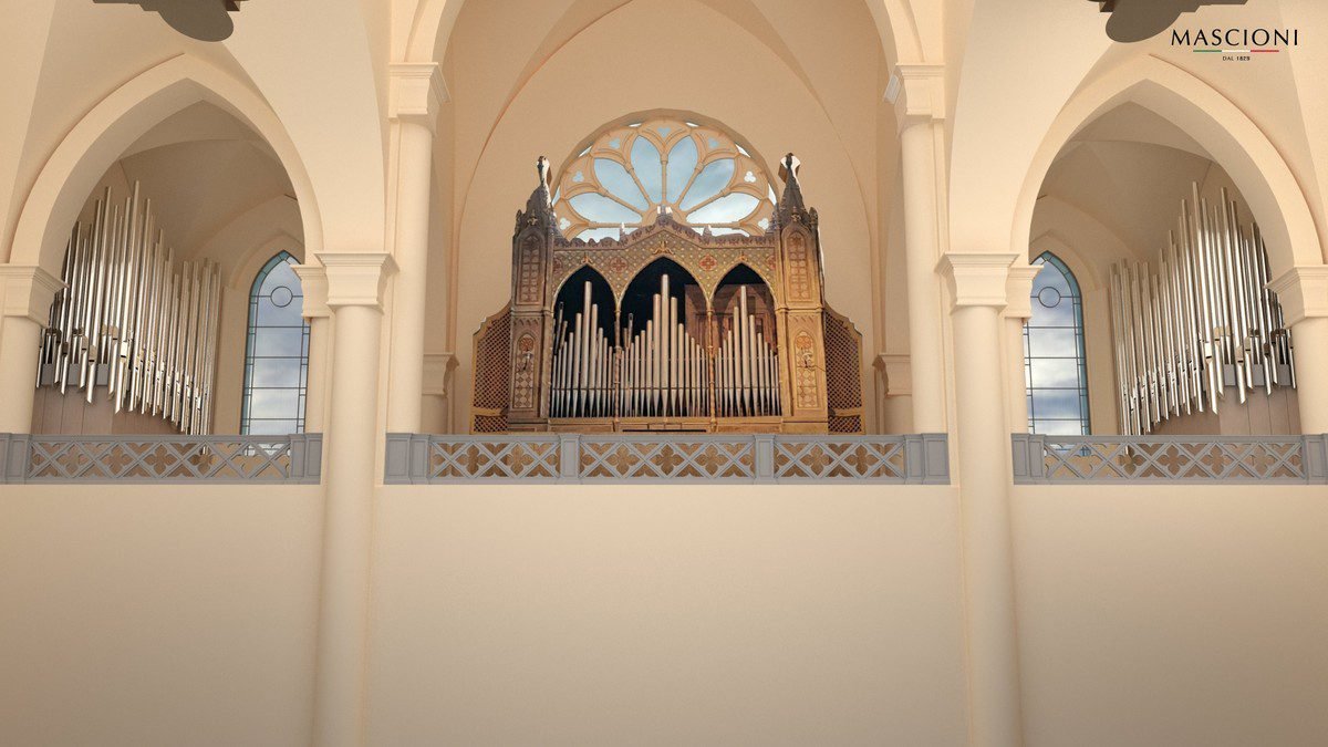 Sarà uno dei più grandi strumenti presenti in Italia, caratterizzato da quattro corpi d’organo (tre in cantoria ed uno a piano chiesa).