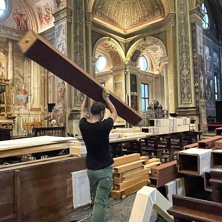 Proseguono le fasi di installazione dell’organo nella cinquecentesca Basilica di Legnano dopo il suo restauro-ricostruzione presso il nostro laboratorio.